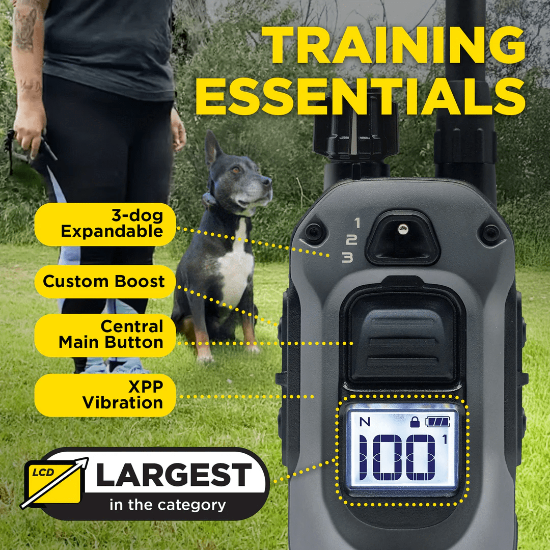 - Expandable transmitter for up to 3 dogs