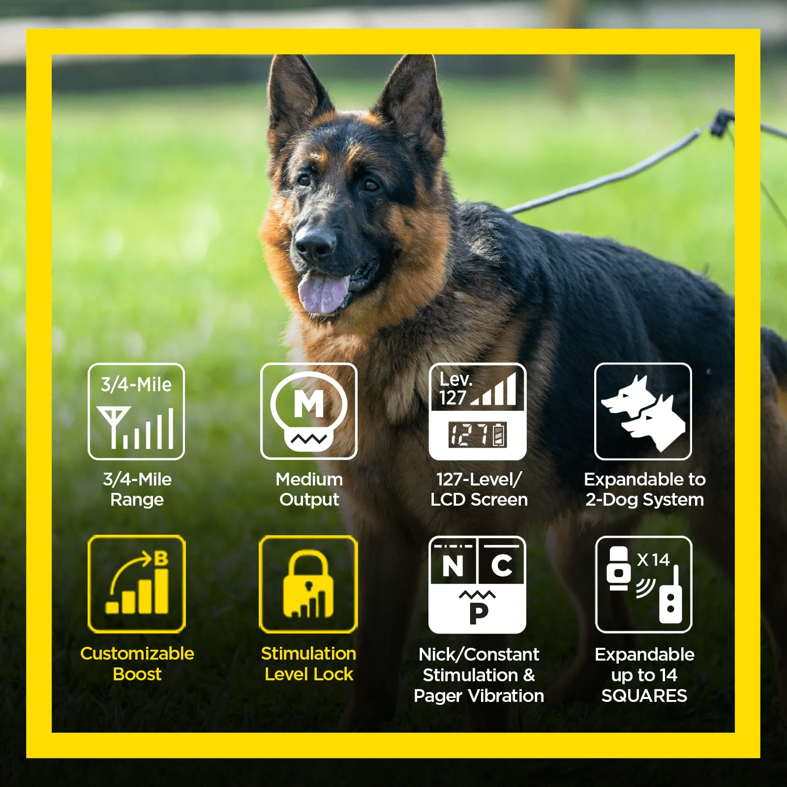 The BOOST function allows you to instantly jump to your pre-set stimulation level. Dog training with the handy HANDSFREE SQUARE remote allows dog owners to easily control without having to reach for the remote control