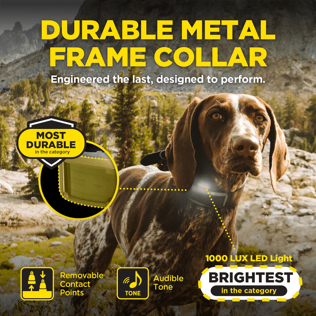 Dogtra 1200X ir radīts treneriem un īpašniekiem, kuriem ir nepieciešama uzticamība. Ar maksimālo darbības rādiusu 1200 m, BOOST funkciju tūlītējai reakcijai un XPP vibrāciju tūlītējai uzmanības pievēršanai, jūs vienmēr kontrolēsiet situāciju, kad tas ir svarīgi. Metāla aizsargapvalks elektroniskajam kakla siksnai darbojas kā bruņas jūsu kakla siksnai, piešķirot papildu izturību vissmagākajos apstākļos. Turklāt LED apgaismojums padara jūsu suni pamanāmu vājā apgaismojumā. Neatkarīgi no tā, vai jūs trenējaties laukā vai pārvarat nelīdzenu reljefu, 1200X ir jūsu uzticams palīgs, kas nodrošina ilgstošu un uzticamu darbību. Šis aprīkojums ir radīts ilgai kalpošanai.